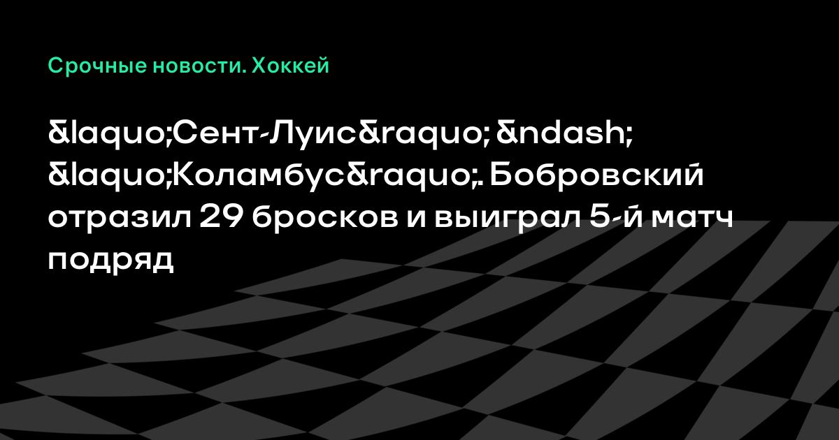 Голкипер «Коламбуса» Сергей Бобровский одержал пятую победу подряд во встрече против «Сент-Луиса» (4:2).Российский вратарь в этой игре отразил 29 бросков из 31.