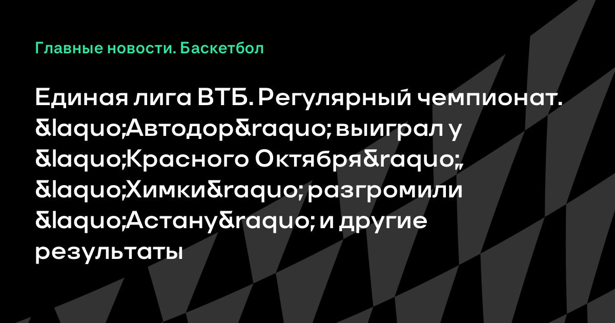 Единая лига ВТБ. Регулярный чемпионат. «Автодор» выиграл у «Красного Октября», «Химки» разгромили «Астану» и другие результаты