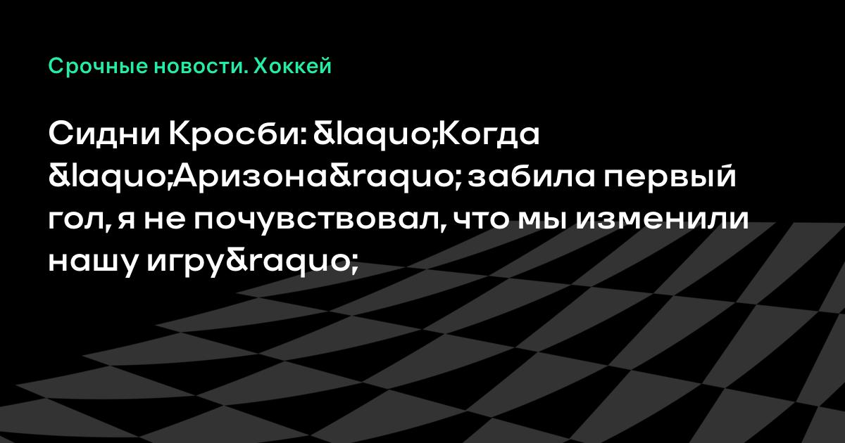Капитан «Питтсбурга» Сидни Кросби поделился мнением после победы над «Аризоной» (3:2).«Я думаю, что мы не опустили голову и играли также в третьем периоде. Даже когда они забили первый гол, мы понимали, что у нас есть шансы забить, но я не почувствовал, что мы изменили нашу игру.