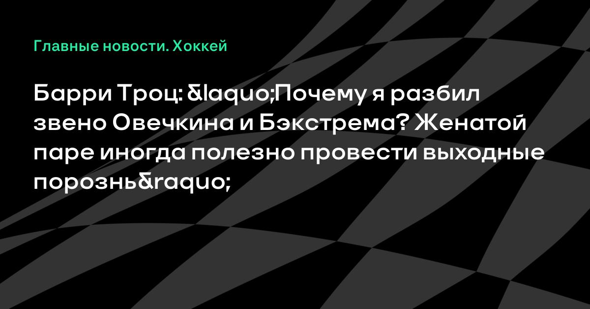 Барри Троц: «Почему я разбил звено Овечкина и Бэкстрема? Женатой паре иногда полезно провести выходные порознь»