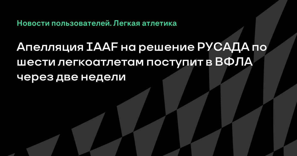 Апелляция IAAF на решение РУСАДА по шести легкоатлетам поступит в ВФЛА через две недели