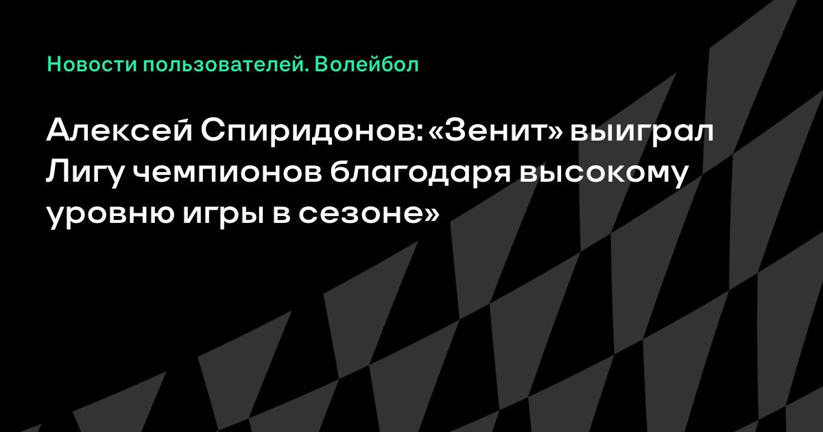 Алексей Спиридонов: «Зенит» выиграл Лигу чемпионов благодаря высокому уровню игры в сезоне»