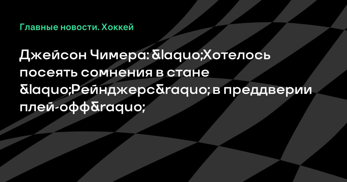 Джейсон Чимера: «Хотелось посеять сомнения в стане «Рейнджерс» в преддверии плей-офф»