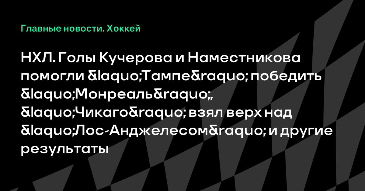 НХЛ. Голы Кучерова и Наместникова помогли «Тампе» победить «Монреаль», «Чикаго» взял верх над «Лос-Анджелесом» и другие результаты