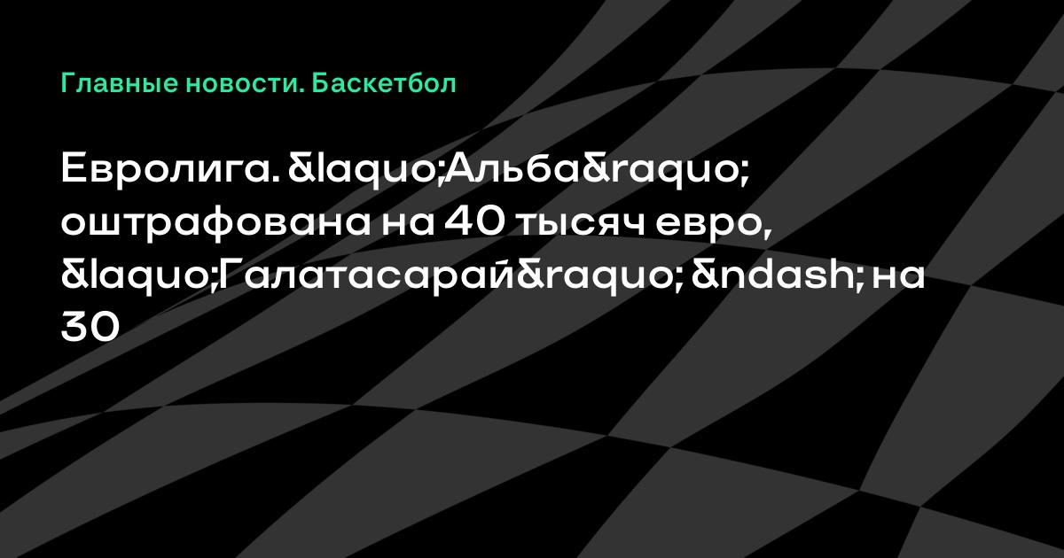 Евролига. «Альба» оштрафована на 40 тысяч евро, «Галатасарай» – на 30