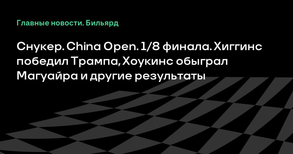 Снукер. China Open. 1/8 финала. Хиггинс победил Трампа, Хоукинс обыграл Магуайра и другие результаты