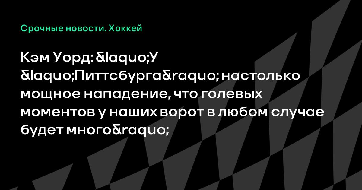 Отдаю себе отчет в том, что работы у меня будет много. У «Питтсбурга» настолько мощное нападение, что невозможно помешать их игрокам создавать множество опасных моментов», цитирует Уорда The Pittsburgh Tribune-Review.