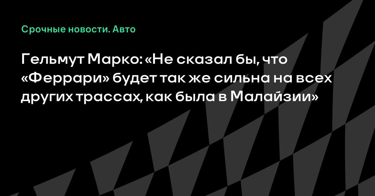 Гельмут Марко: «Не сказал бы, что «Феррари» будет так же сильна на всех других трассах, как была в Малайзии»