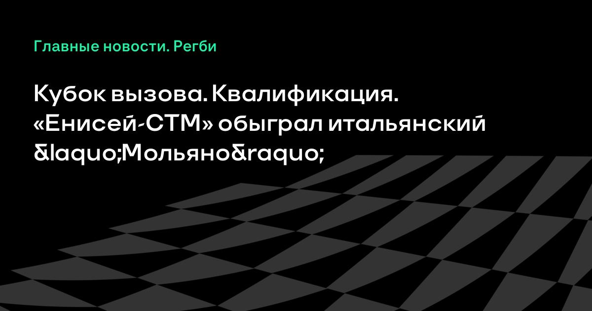 Красноярский регбийный клуб «Енисей-СТМ» в квалификации Кубка вызова сегодня обыграл итальянский «Мольяно» (19:15) и вышел в плей-офф, где встретится с «Бая-Маре» из Румынии. Победитель матча плей-офф выйдет в основную часть турнира.