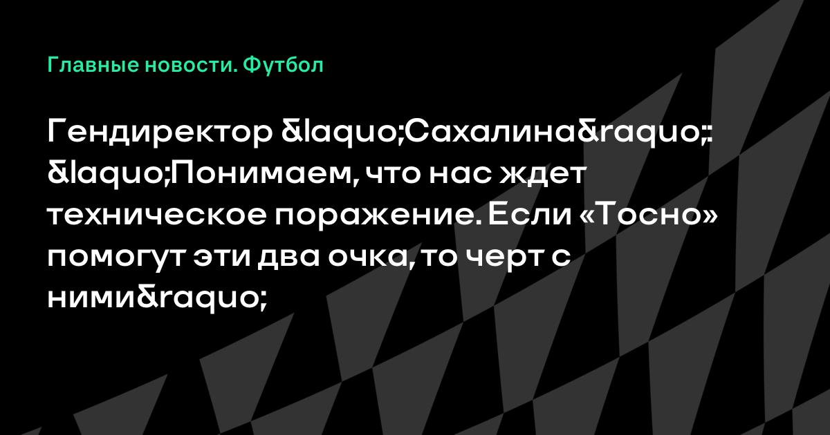 Гендиректор «Сахалина»: «Понимаем, что нас ждет техническое поражение. Если «Тосно» помогут эти два очка, то черт с ними»