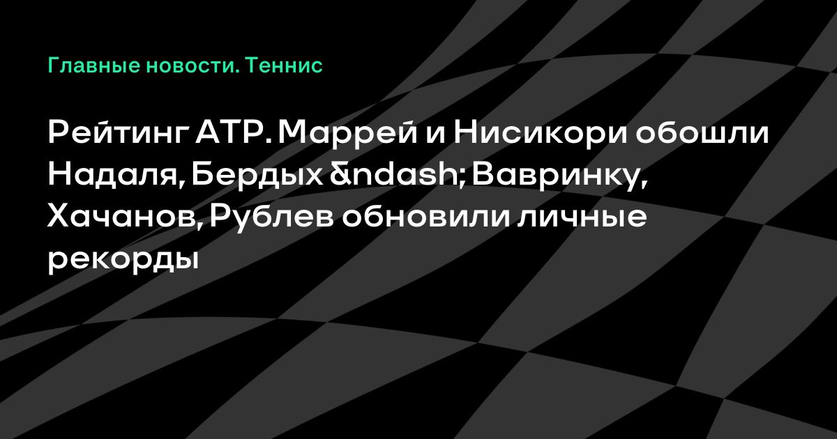 Рейтинг АТР. Маррей и Нисикори обошли Надаля, Бердых – Вавринку, Хачанов, Рублев обновили личные рекорды