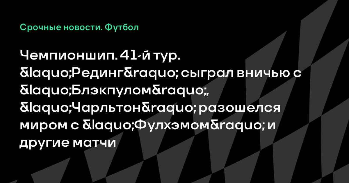 Чемпионшип. 41-й тур. «Рединг» сыграл вничью с «Блэкпулом», «Чарльтон» разошелся миром с «Фулхэмом» и другие матчи