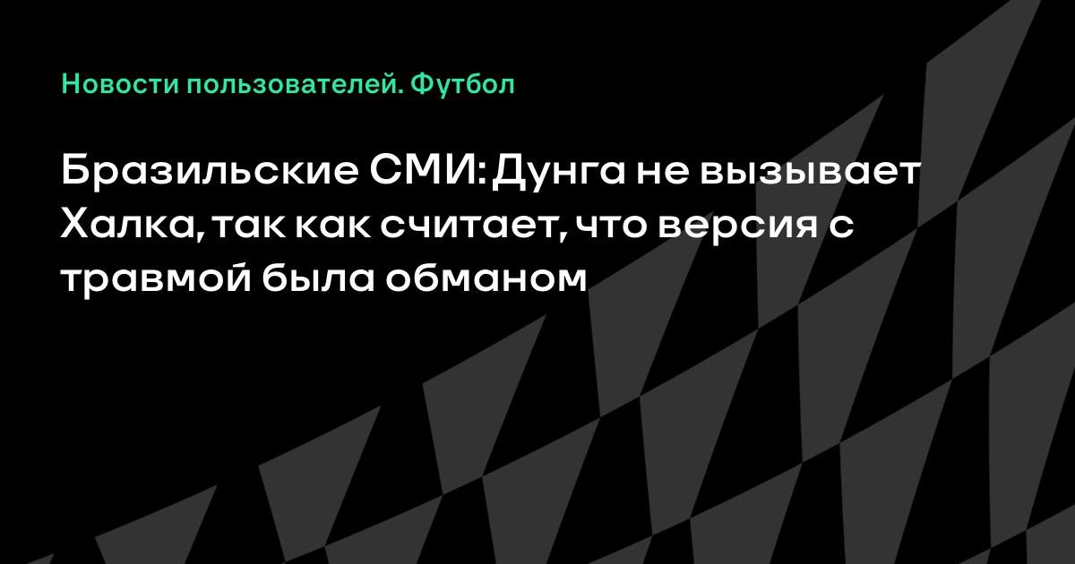 Бразильские СМИ: Дунга не вызывает Халка, так как считает, что версия с травмой была обманом