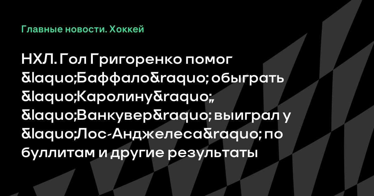 НХЛ. Гол Григоренко помог «Баффало» обыграть «Каролину», «Ванкувер» выиграл у «Лос-Анджелеса» по буллитам и другие результаты