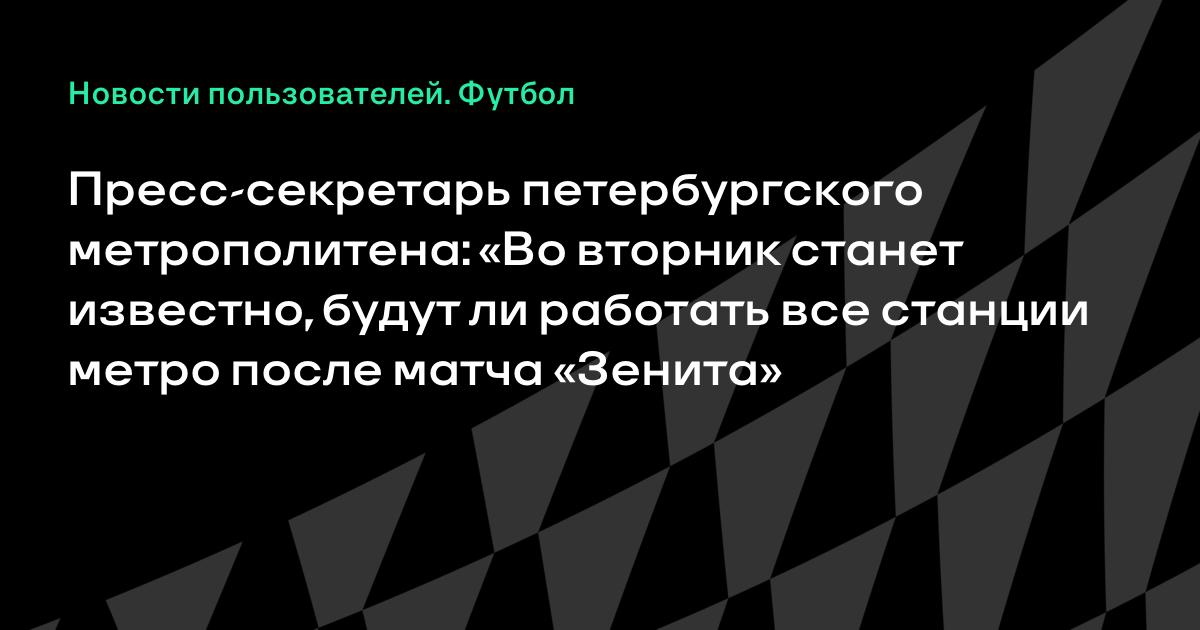 Пресс-секретарь петербургского метрополитена: «Во вторник станет известно, будут ли работать все станции метро после матча «Зенита»