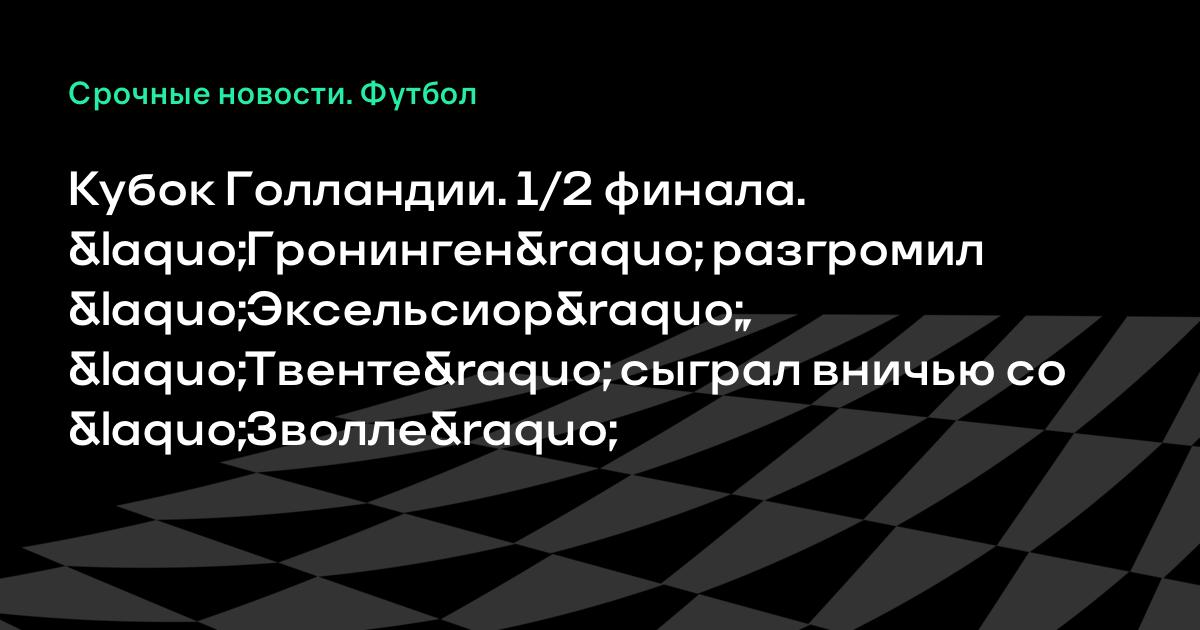 Кубок Голландии. 1/2 финала. «Гронинген» разгромил «Эксельсиор», «Твенте» сыграл вничью со «Зволле»