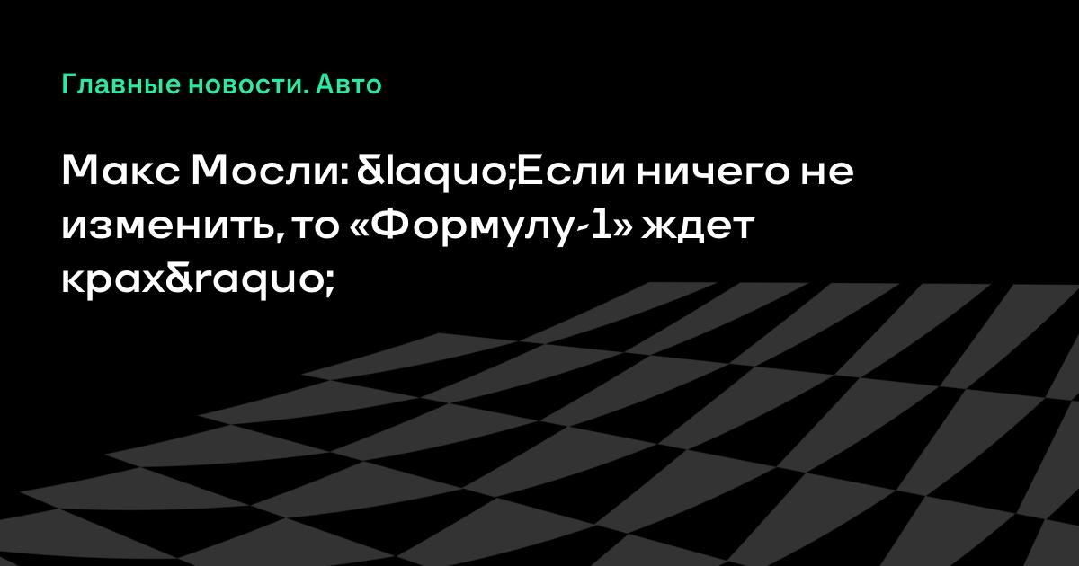 Макс Мосли: «Если ничего не изменить, то «Формулу-1» ждет крах»