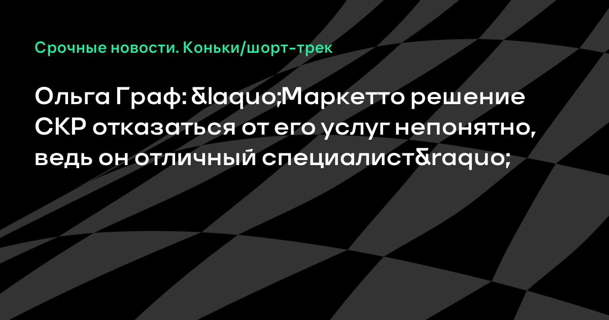 Мы постоянно находимся на связи с Маркетто – он ждет новостей из России, из Министерства. Ему решение СКР отказаться от его услуг непонятно, ведь он отличный специалист. Но, по-моему, он, как и мы, спортсмены, все новости узнает от журналистов. Что могу сказать о Маркетто хорошего? Самое хорошее в нем – что про него нельзя сказать ничего плохого», – рассказала Граф.