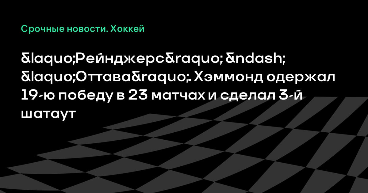 «Рейнджерс» – «Оттава». Хэммонд одержал 19-ю победу в 23 матчах и сделал 3-й шатаут