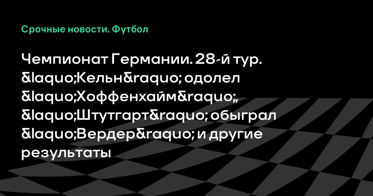 Чемпионат Германии. 28-й тур. «Кельн» одолел «Хоффенхайм», «Штутгарт» обыграл «Вердер» и другие результаты