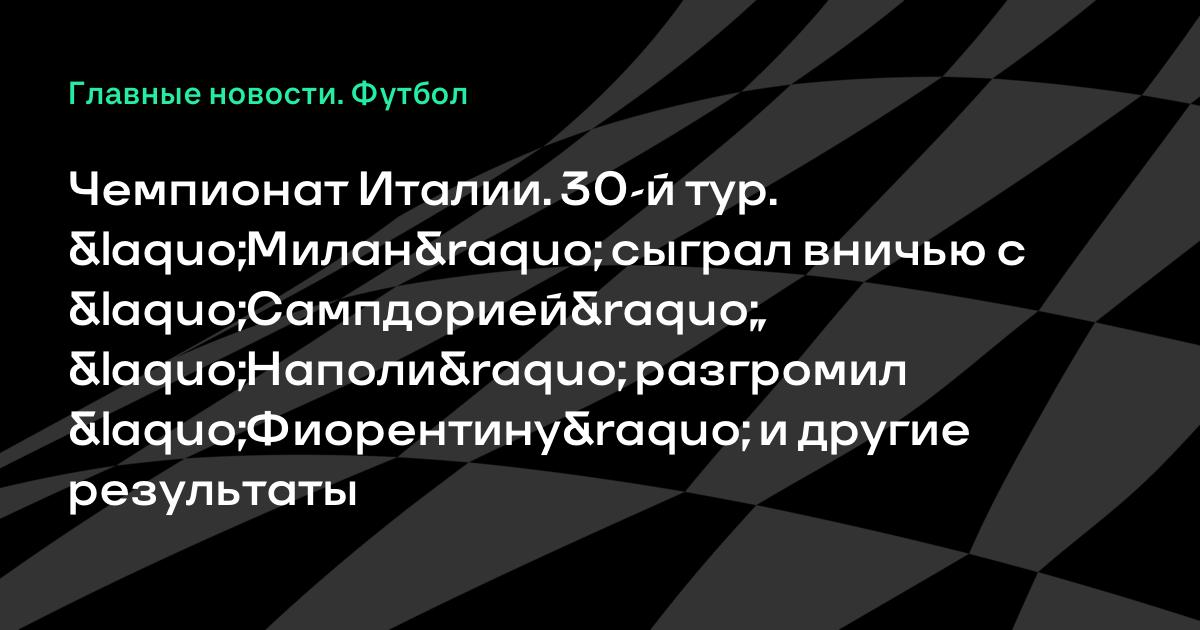 Чемпионат Италии. 30-й тур. «Милан» сыграл вничью с «Сампдорией», «Наполи» разгромил «Фиорентину» и другие результаты