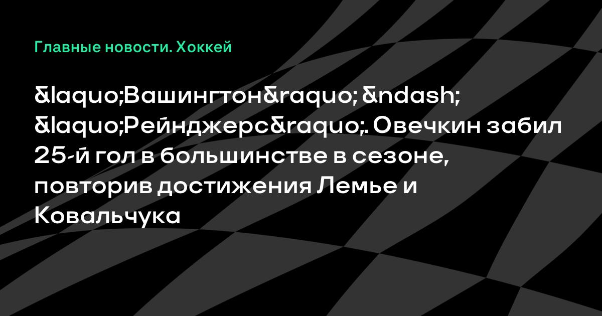 «Вашингтон» – «Рейнджерс». Овечкин забил 25-й гол в большинстве в сезоне, повторив достижения Лемье и Ковальчука
