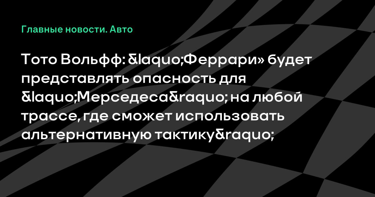 «Феррари» будет представлять опасность для нас на любой трассе, где за счет лучшей работы с шинами сможет использовать альтернативную тактику», – сказал Вольфф.