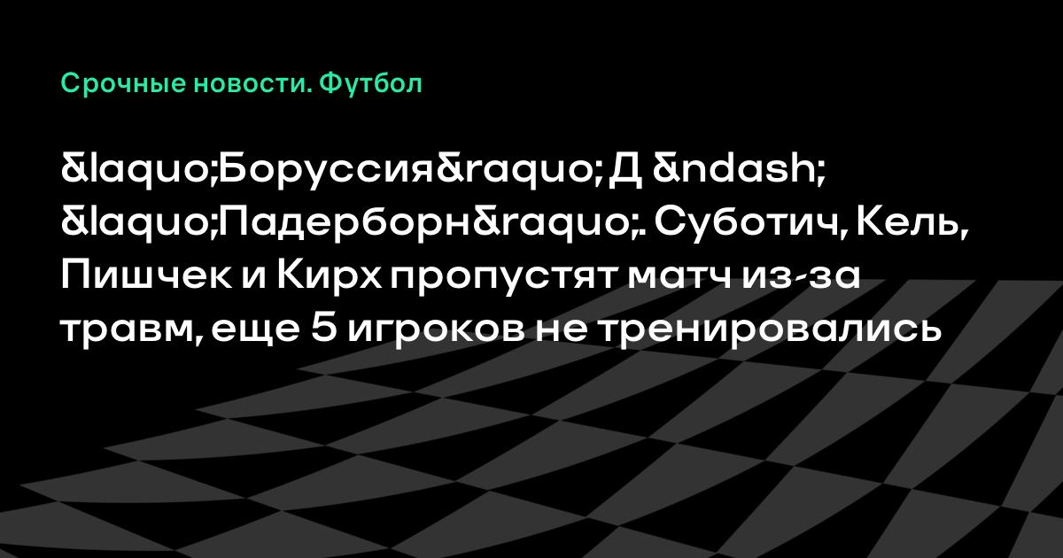 «Боруссия» Д – «Падерборн». Суботич, Кель, Пишчек и Кирх пропустят матч из-за травм, еще 5 игроков не тренировались