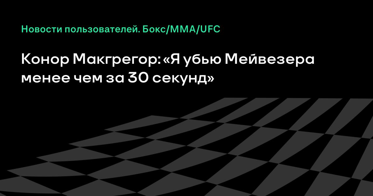 Если я встречусь с лучшим боксером вне зависимости от веса — с Мейвезером — лицом к лицу, если я буду драться с Флойдом, то убью его менее чем за 30 секунд. Менее 30-ти секунд понадобится мне на то, чтобы обвить его подобно удаву и задушить», — заявил Макгрегор.