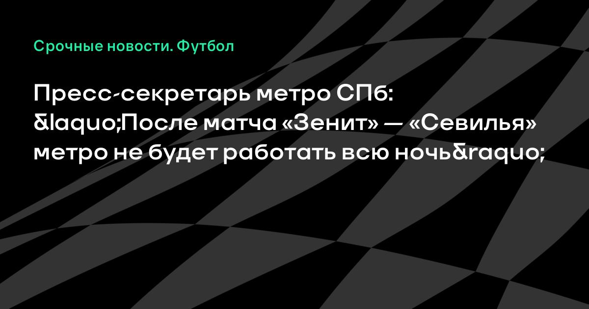 Пресс-секретарь метро СПб: «После матча «Зенит» — «Севилья» метро не будет работать всю ночь»