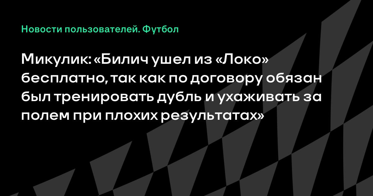 Микулик: «Билич ушел из «Локо» бесплатно, так как по договору обязан был тренировать дубль и ухаживать за полем при плохих результатах»