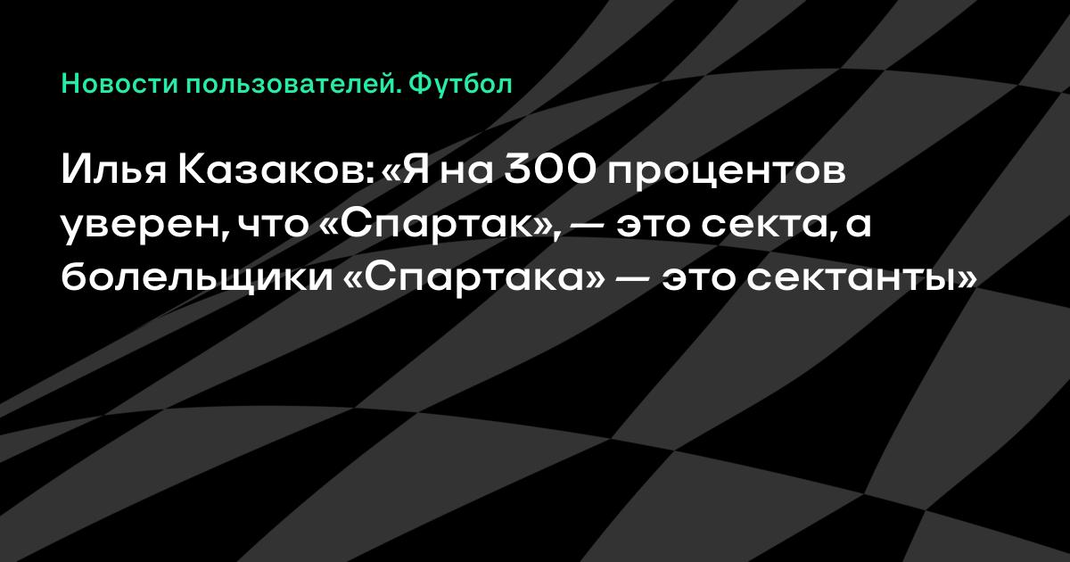 Илья Казаков: «Я на 300 процентов уверен, что «Спартак», — это секта, а болельщики «Спартака» — это сектанты»