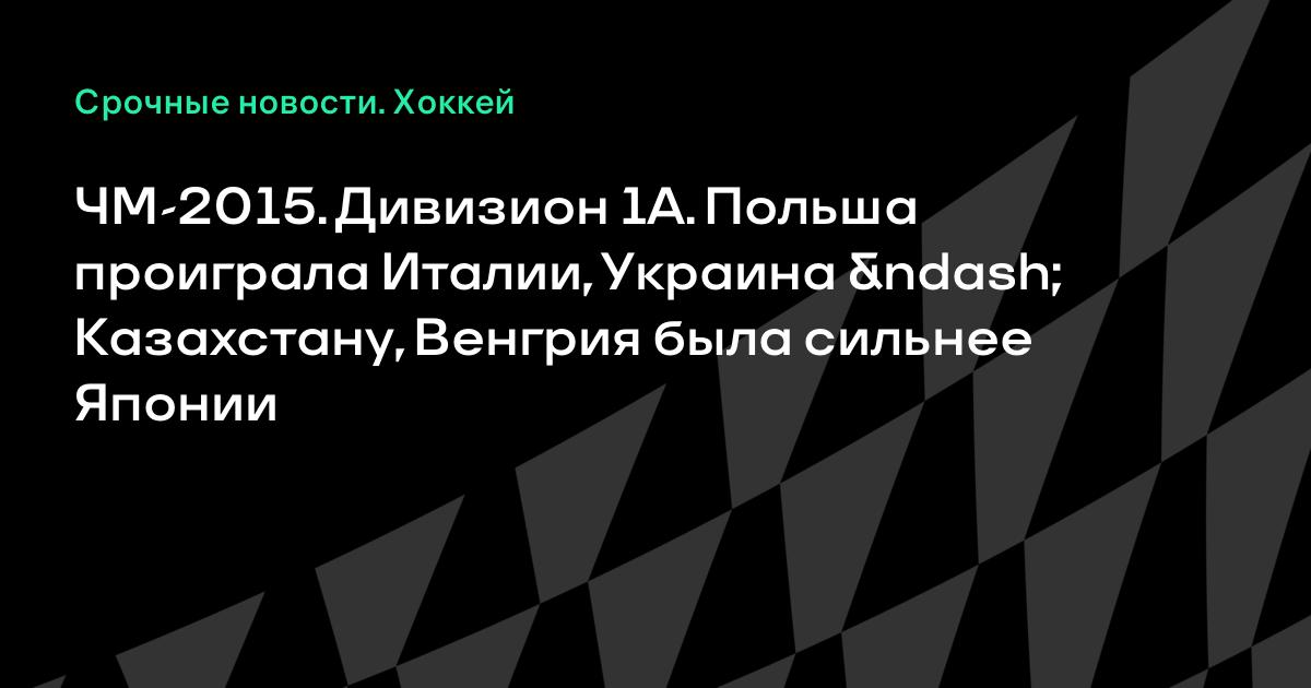 ЧМ-2015. Дивизион 1А. Польша проиграла Италии, Украина – Казахстану, Венгрия была сильнее Японии