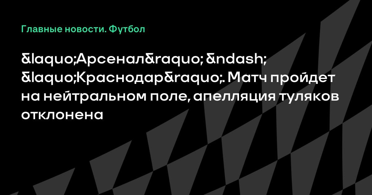 «Арсенал» – «Краснодар». Матч пройдет на нейтральном поле, апелляция туляков отклонена