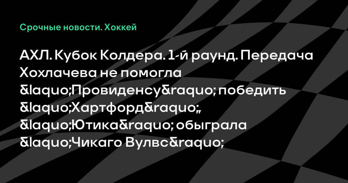 АХЛ. Кубок Колдера. 1-й раунд. Передача Хохлачева не помогла «Провиденсу» победить «Хартфорд», «Ютика» обыграла «Чикаго Вулвс»