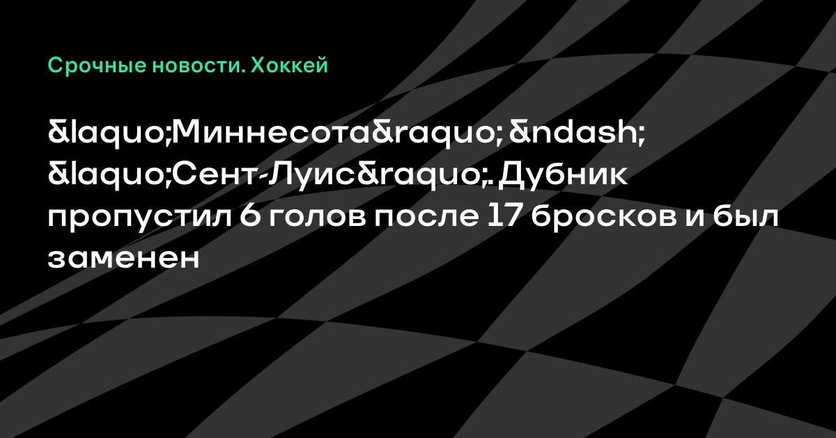 «Миннесота» – «Сент-Луис». Дубник пропустил 6 голов после 17 бросков и был заменен