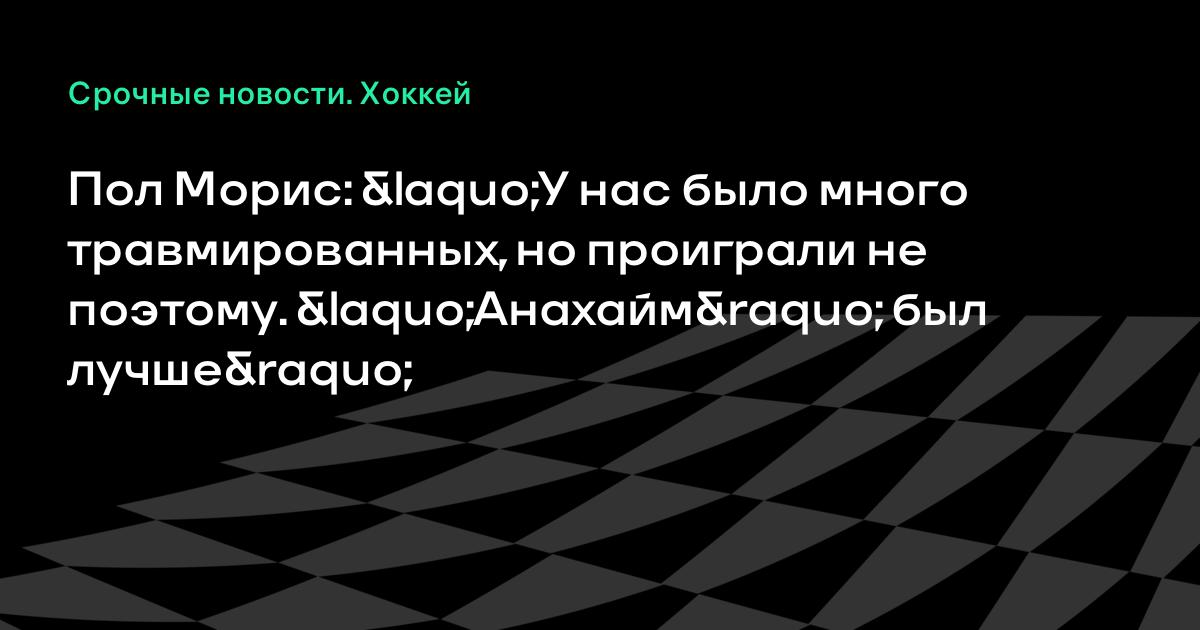 Пол Морис: «У нас было много травмированных, но проиграли не поэтому. «Анахайм» был лучше»