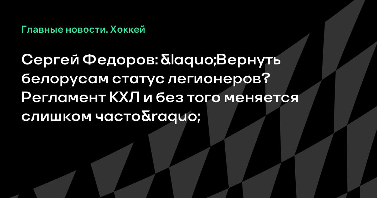 Сергей Федоров: «Вернуть белорусам статус легионеров? Регламент КХЛ и без того меняется слишком часто»