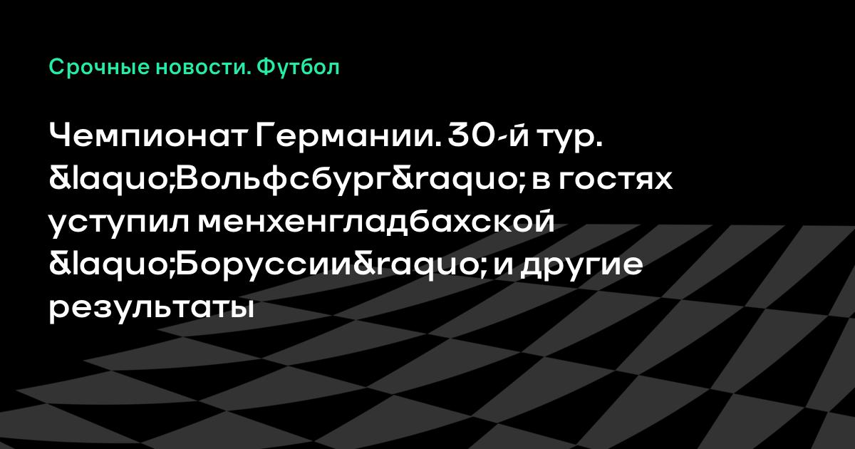 Чемпионат Германии. 30-й тур. «Вольфсбург» в гостях уступил менхенгладбахской «Боруссии» и другие результаты