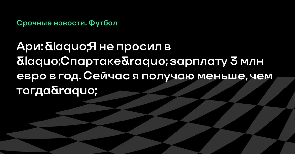 Ари: «Я не просил в «Спартаке» зарплату 3 млн евро в год. Сейчас я получаю меньше, чем тогда»