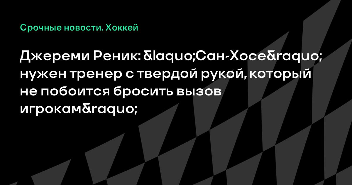 Джереми Реник: «Сан-Хосе» нужен тренер с твердой рукой, который не побоится бросить вызов игрокам»