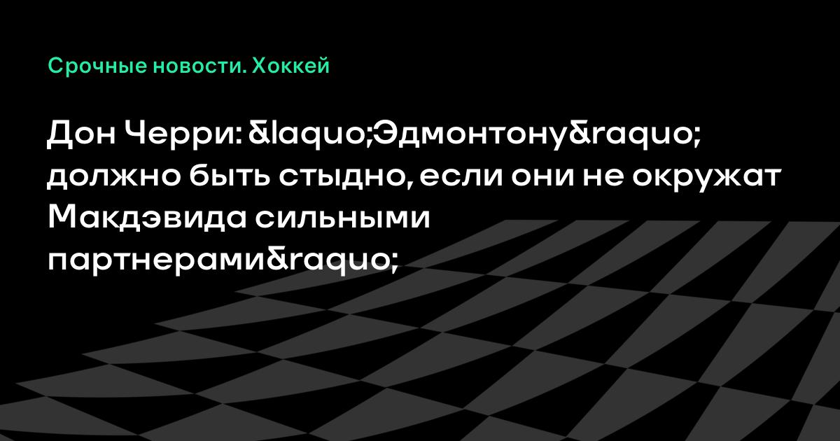 Известный хоккейный эксперт Дон Черри заявил, что «Эдмонтон» должен подобрать Коннору Макдэвиду сильных партнеров.«Вам должно быть стыдно, если вы не окружите Макдэвида сильными партнерами, потому что такие парни, как он появляются редко.