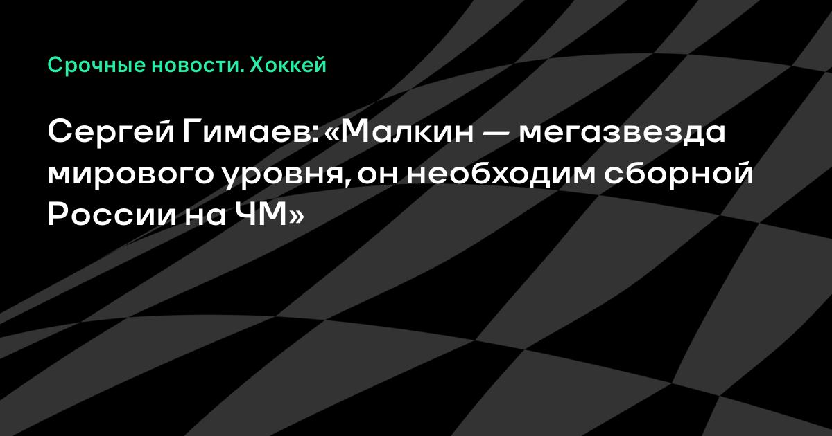 Малкин необходим сборной России на чемпионате мира, это не обсуждается, Малкин — мегазвезда мирового уровня, он очень нам нужен, это игрок первого звена. Тем более что с центрами у нас колоссальная проблема, просто беда, без Малкина будет сложно», — сказал Гимаев.