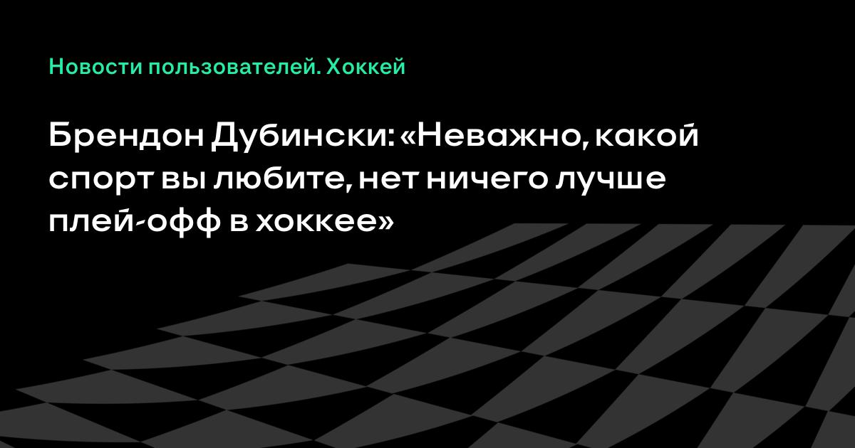 Брендон Дубински: «Неважно, какой спорт вы любите, нет ничего лучше плей-офф в хоккее»