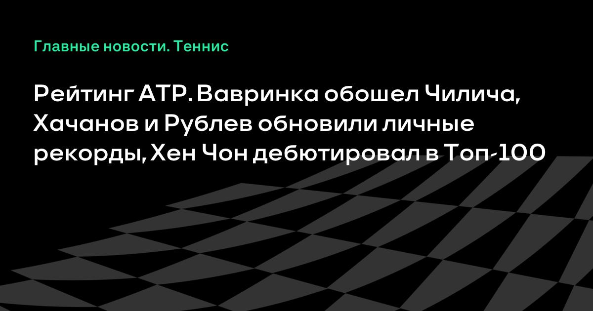 Рейтинг ATP. Вавринка обошел Чилича, Хачанов и Рублев обновили личные рекорды, Хен Чон дебютировал в Топ-100