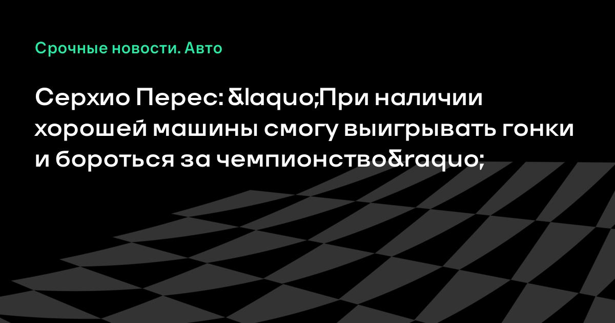 Серхио Перес: «При наличии хорошей машины смогу выигрывать гонки и бороться за чемпионство»