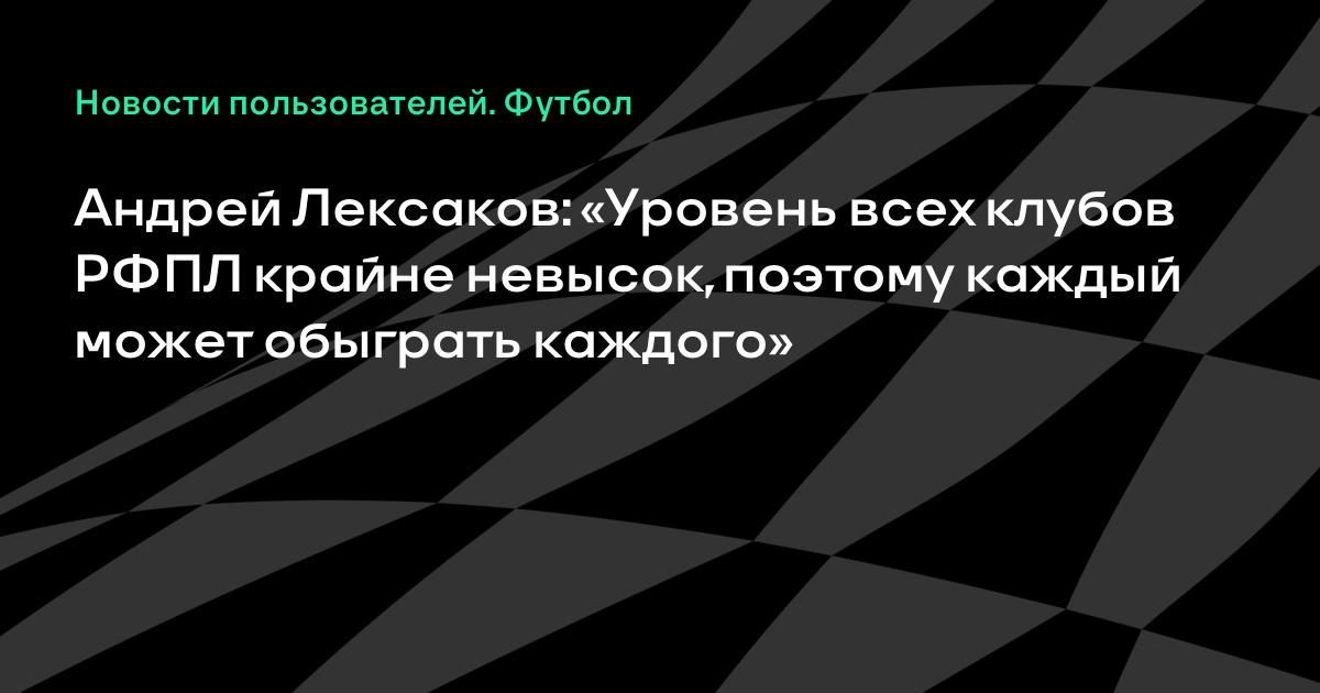 Андрей Лексаков: «Уровень всех клубов РФПЛ крайне невысок, поэтому каждый может обыграть каждого»