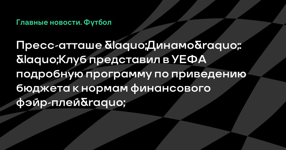 Пресс-атташе «Динамо»: «Клуб представил в УЕФА подробную программу по приведению бюджета к нормам финансового фэйр-плей»