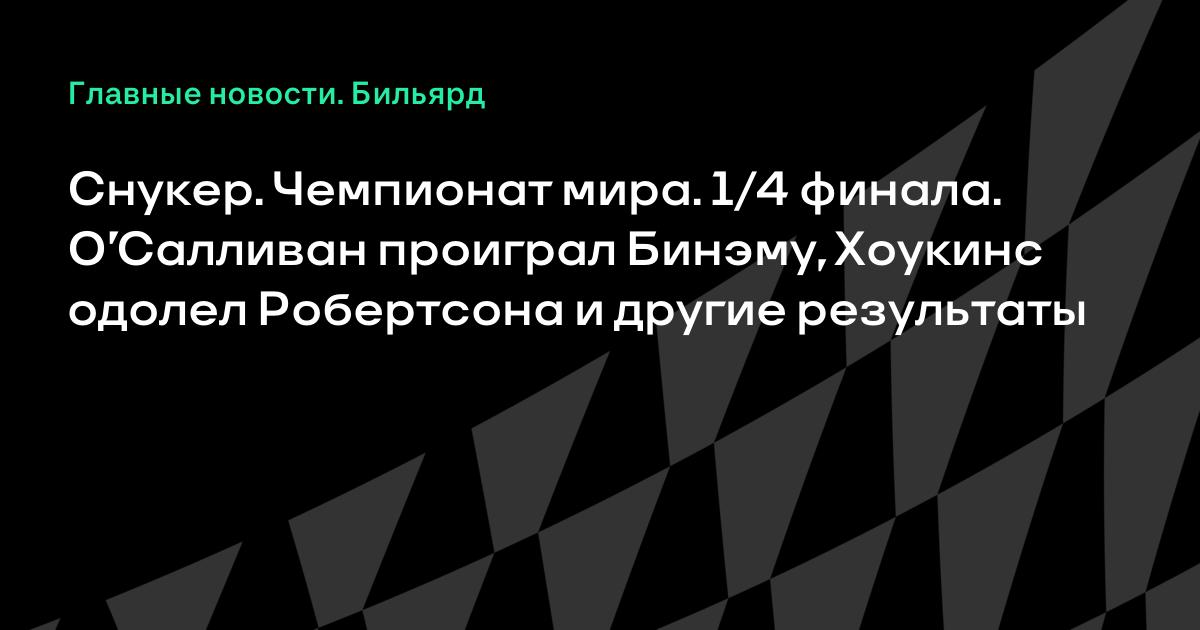 Снукер. Чемпионат мира. 1/4 финала. О’Салливан проиграл Бинэму, Хоукинс одолел Робертсона и другие результаты