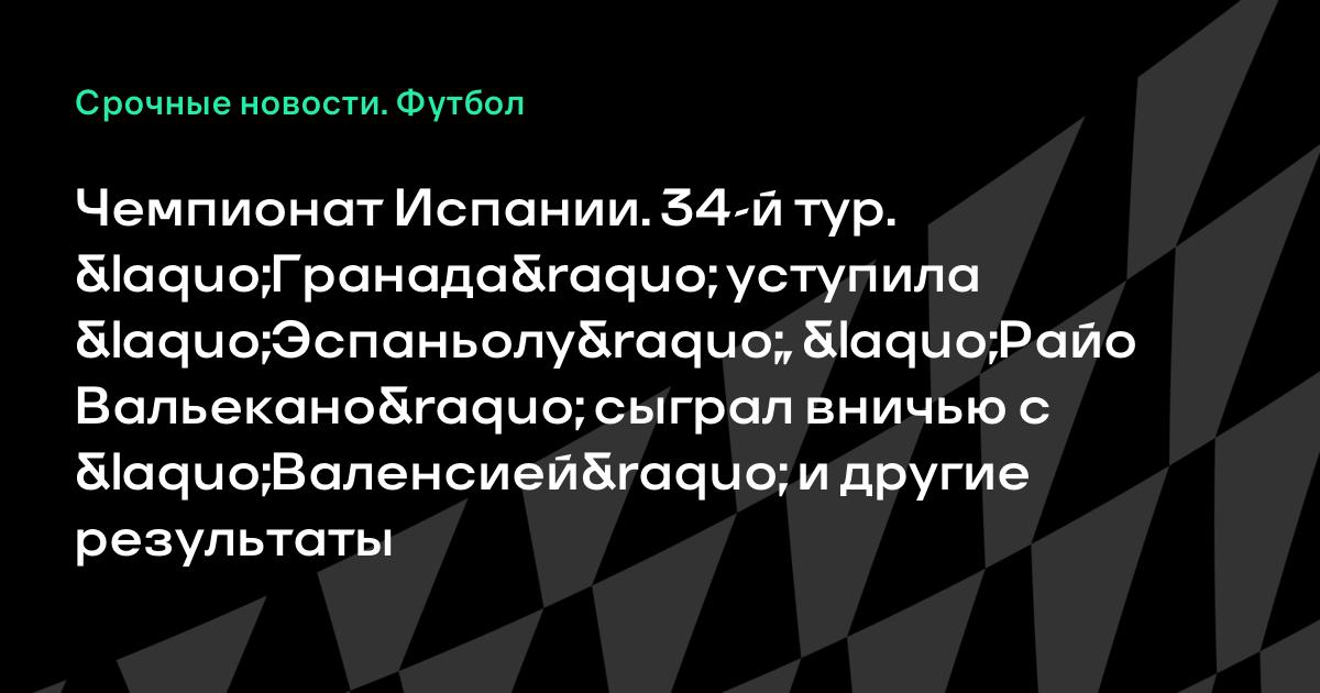 Чемпионат Испании. 34-й тур. «Гранада» уступила «Эспаньолу», «Райо Вальекано» сыграл вничью с «Валенсией» и другие результаты